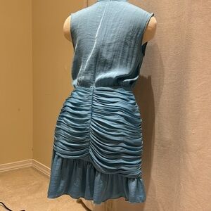 Chic sleeveless mini dress by Naked Zebra. Features a pleated bodice and wavy skirt design. Perfect for stylish outings.