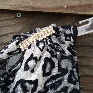 Elegant one shoulder cocktail dress. Rhinestones at shoulder. Pretty flutter down the side.