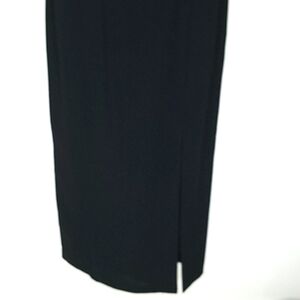 formal Maxi cocktail dress with lace sequin embellished top and crepe like lined fabric skirt with side slit black monochromatic crew neck