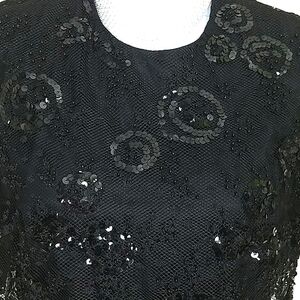 Cocktail dress short sleeve formal sequin circle maxi black lace stretch Small