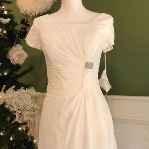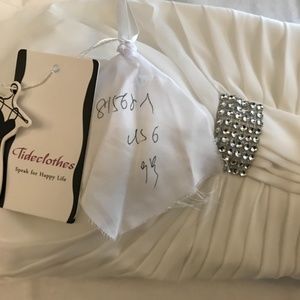 White short cocktail party dress with trim. My dresses do tend to run small. You may need to size up in my closet from your normal. So Please verify your measurements before ordering. The chart is for your full circumference. If you are using the laying flat measuring method, then you will need to double that number before trying to locate your size on the chart.