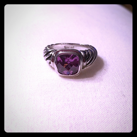18K GE silver toned ring with purple amethyst stone. Very gently worn once.