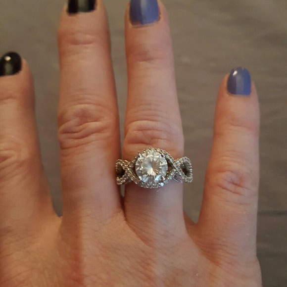 💍💍💍TREAT YOURSELF. Sterling silver with About 2ct round cz surrounded by pave cz's barely worn. Very pretty!!! Looks,like wedding ring