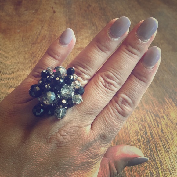 Black silver and clear beaded cocktail ring. The size is adjustable and it has a lil jangle when you wear it. Very chic and fun to style up your next outfit. It goes with everything. ๐๐๐