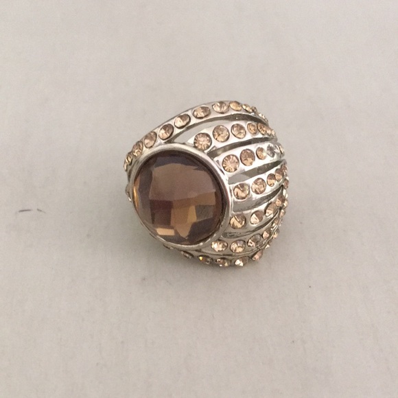 Gold metallic ring with small gold stones and one large amber colored stone. Smoke free home. Bundle 3 items and save 20%.