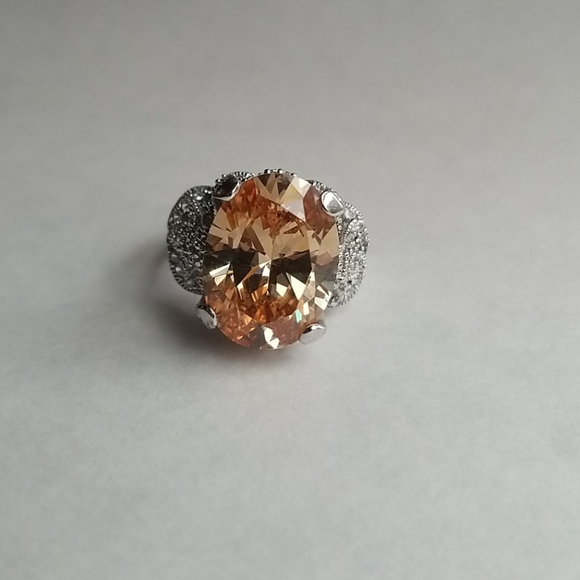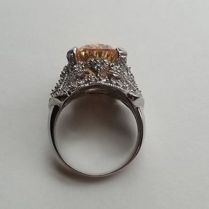 Stunning .925 CZ and sterling cocktail ring. Citrine look 5/8" main stone surrounded by sparkly cubic zirconia!