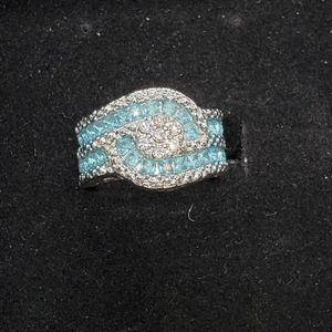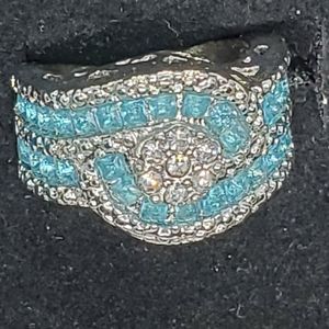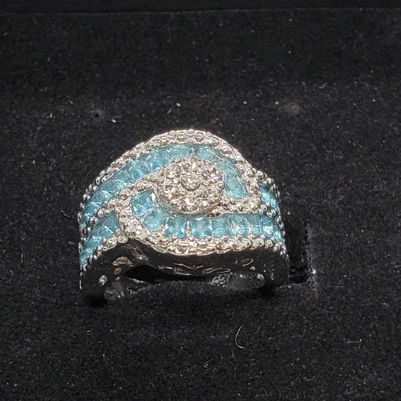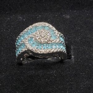 Ladies gorgeous light blue cocktail ring cz set in silver, size 8