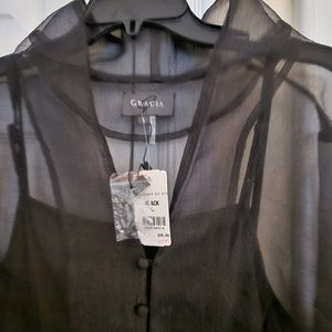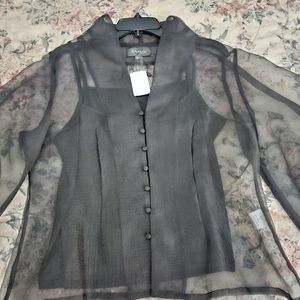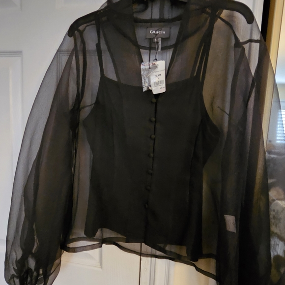 Beautiful cocktail 🍸 see-through top. Perfect for an evening event. Size L, does not include cami,(picture w/ cami for best look) I bought it in Las Vegas but never wore it.