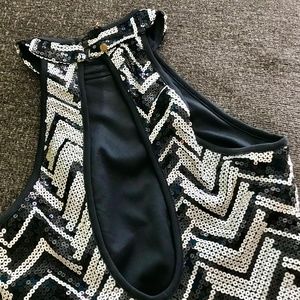 Shimmery sequins create a sexy kaleidoscopic design. A perfect party dress!