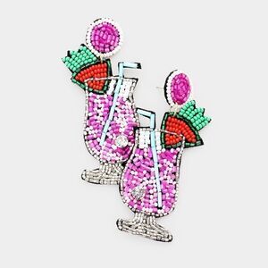 Cocktail Pink Seed Bead Felt Back Earrings by Treasure Jewelry