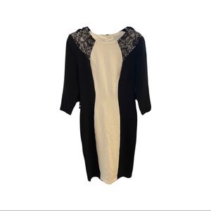 NEVER WORN- black & white fitted dress with neck line detailing.