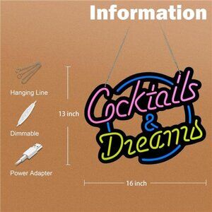 ⚡ Cocktails & Dreams LED Neon Sign Movie Art Wall Lights Bedroom Bar Party Club ⚡