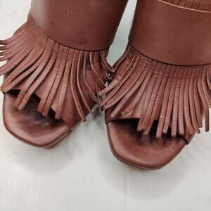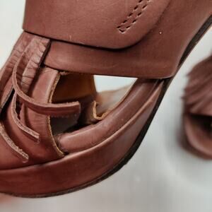 Coclico Anthropologie 'Fito' Brown Leather Fringe Peep Toe Sandals Size 36