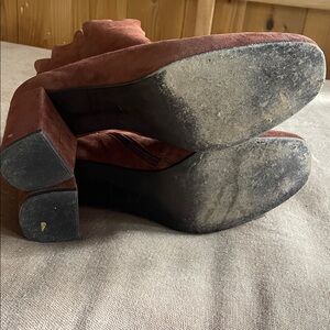 Coclico Brown Rust Colored Suede Ruffle Ankle Booties