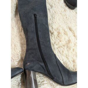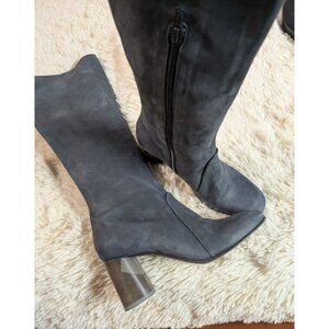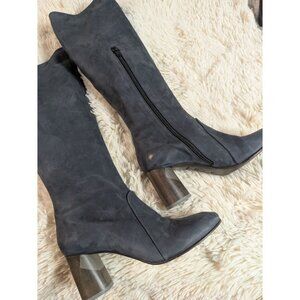 Coclico Lilac Leather Navy Tall Boots Block Heel & Side Zipper Design, Size 38
