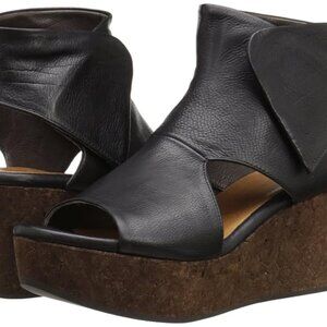 Coclico Mind Cutout Cork Wedgek Black Leather Sandals Size 39.5 EUC