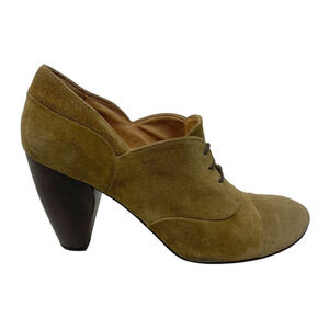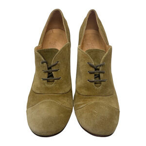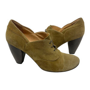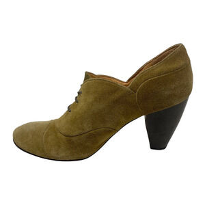Coclico Sz EU 37 US 6.5-7 Olive Suede Cone Heeled Lace Up Booties Shooties