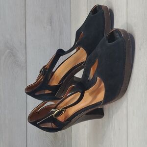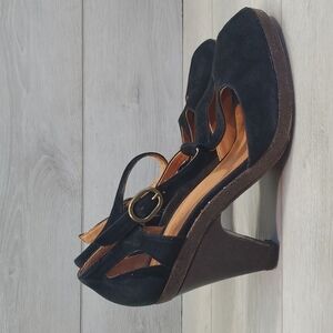 Coclico Womens Suede Ankle Strap Heels Open Toe Sandals Shoes sz 38 US 7.5