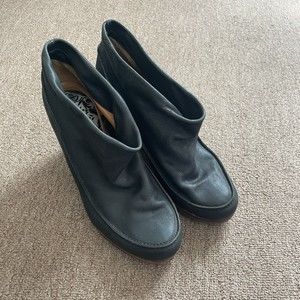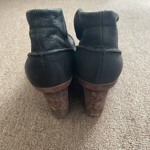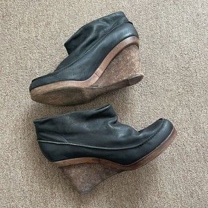 Coclio Black Leather Cork Wedge Boots Booties Size 40 Size 9