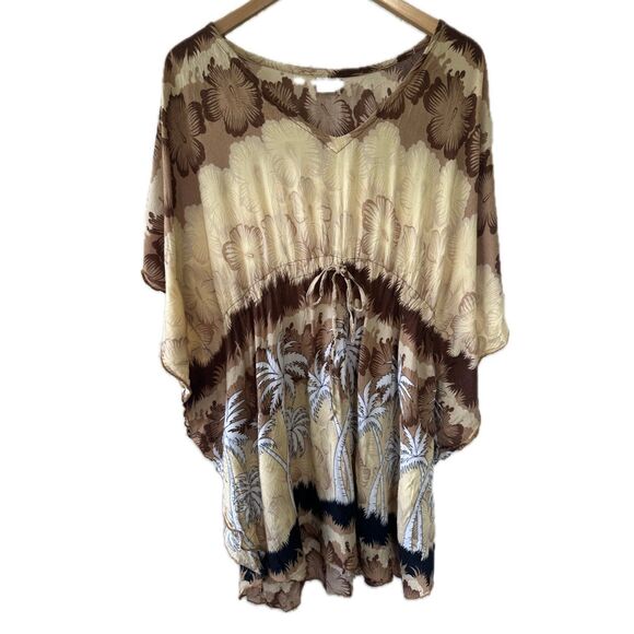 Coco Beach Hawaii Hawaiian Floral Hibiscus Tropical Earthy Swim Cover Up Dress One Size