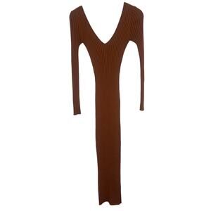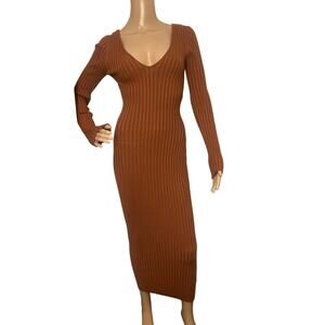 Coco & Bella Rayon Bodycon Ribbed Long Sleeve Fall Maxi Dress S Orange