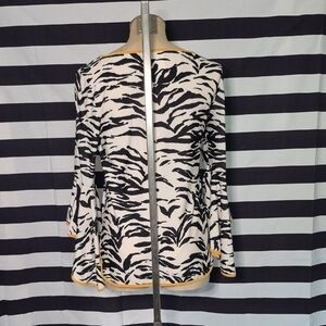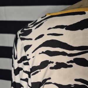 Coco Bianco Black and White Zebra Print Blouse with Yellow Trim