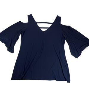 Coco Bianco Cold Shoulder Bell Sleeve Blouse Women's Navy Blue Size L