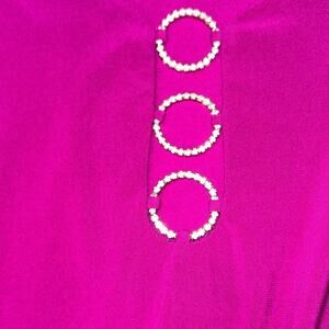 Coco Bianco vivid magenta top is vintage, with 3 rhinestone rings in the V-neck.