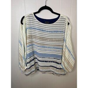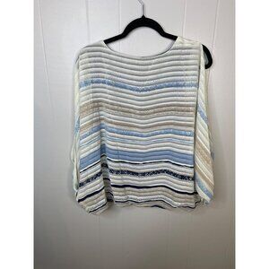 Coco Bianco Womens Medium Striped Lightweight Top With Cut-Out Sleeves & Crew Ne