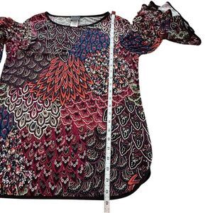 Coco Bianco Women's Multicolor Peacock Pattern Tunic size Large