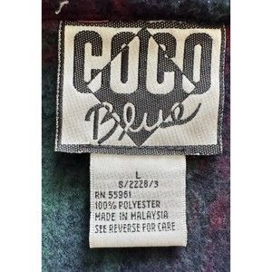Coco Blue Womens Fleece Button up Blazer Red Green Plaid Coat Jacket Size Large.