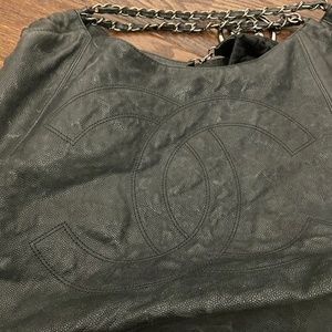 Gorgeous XL Chanel tote. Worn once. No markings, no scratches, no stains, as close to brand new as it gets. This XL tote by Chanel is essential for anyone on the go. Its made from Caviar leather and is detailed with a large CC logo. It comes with chain leather shoulder handles. The very spacious fabric lined interior makes it a great option for everyday wear