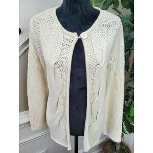 Coco + Capers Women's Ivory 100% Acrylic Long Sleeve Open Front Long Cardigan L