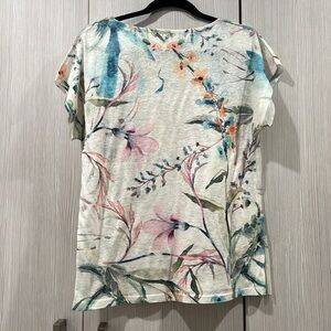 Coco + Carmen 3D Watercolor Floral Tee – Women’s Small/Medium. This wearable art tee features a vibrant watercolor floral design with stunning 3D texture. Soft, breathable fabric and relaxed fit make it perfect for everyday wear. Excellent preowned condition – no signs of wear. Easy to style with jeans, shorts, or layered under a jacket. See photos for measurements.