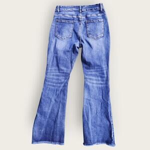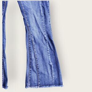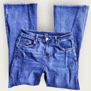 Coco + Carmen Jeans Womens Sz L Blue Denim Bootcut Stretch Raw Hem Crease Design