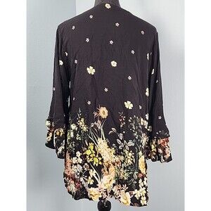 Coco + Carmen L/XL Tunic Floral Tiered Ruffle Sleeve Boho Bead Embellished Top