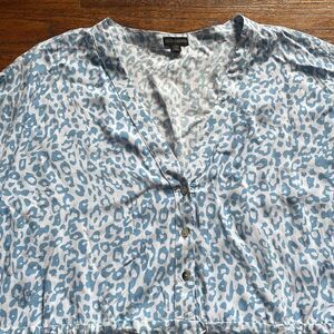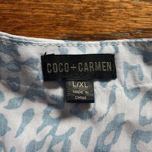 Coco + Carmen Women’s L/XL Light Blue and White Magnolia Ruffle Sleeve Tie Front Dress…excellent condition!