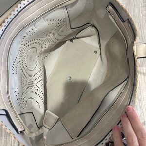 Super cute Coco+Carmen purse. Zip top and a lot of room inside. Back does have a few little spots that I believe will wash right off. (Picture to show)