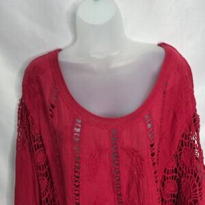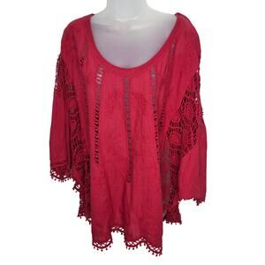 Coco + Carmen Red Boho Embroidered Short Sleeve Relaxed Fit Batwing Blouse XXL