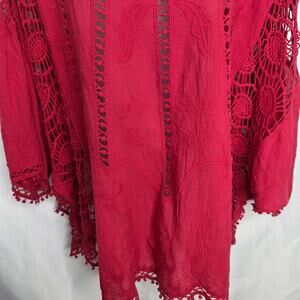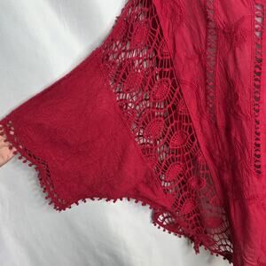 Coco + Carmen Red Boho Embroidered Shirt/ Top/ Blouse