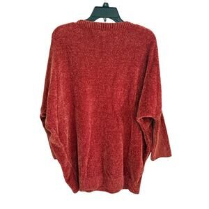 Coco + Carmen cozy red chenille sweater in size M. Features a soft knit with a relaxed fit, ribbed cuffs, and hem for a classic casual look. Perfect for layering during fall and winter.