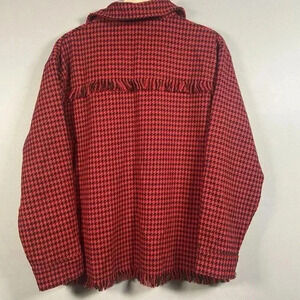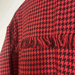 Coco + Carmen Red Houndstooth Shacket Top Fringe Top Size S/M Preppy Classic