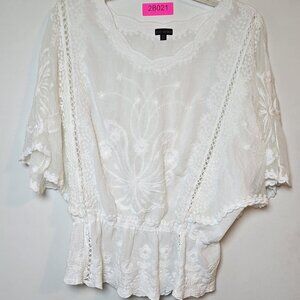 Coco + Carmen White Embroidered Boho Peasant Blouse Women’s Size M/L