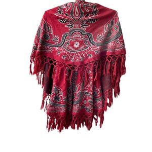 Coco + Carmen fringe Aztec cape layered wrap . There are armholes on inside making this a layered looking piece. Boho festival