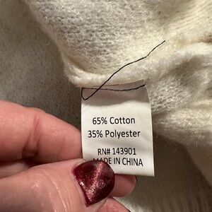 Coco & Carmen size S/M sweater. She is oversized measuring 25” P2P and 27” S2H. She is beautiful and soft. Her materials are shown in the pictures.