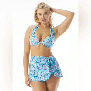 Coco Contours Cameo Halter Bra Sized Underwire Push Up Bikini All Over Tie Dye