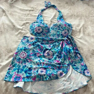 Coco Contours Halo Sarong Swim Skirt All Over Tie Dye Size XL
