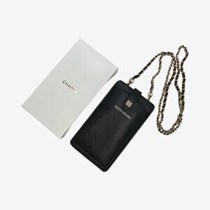 Coco Crush Style Black Phone Holder Crossbody With Chain Two Card Slots New