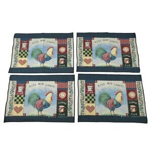 Item: Coco Dowley Rooster Tapestry Placemats Set of 4 Rise And Shine Vintage Farmhouse Country Kitchen