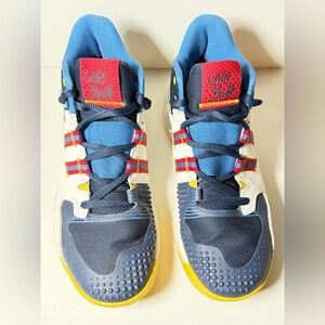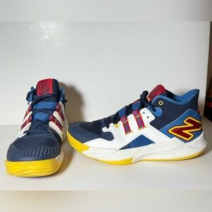 Vibrant sneakers with a mix of blue, yellow, red, and white. Perfect for sports and casual wear.